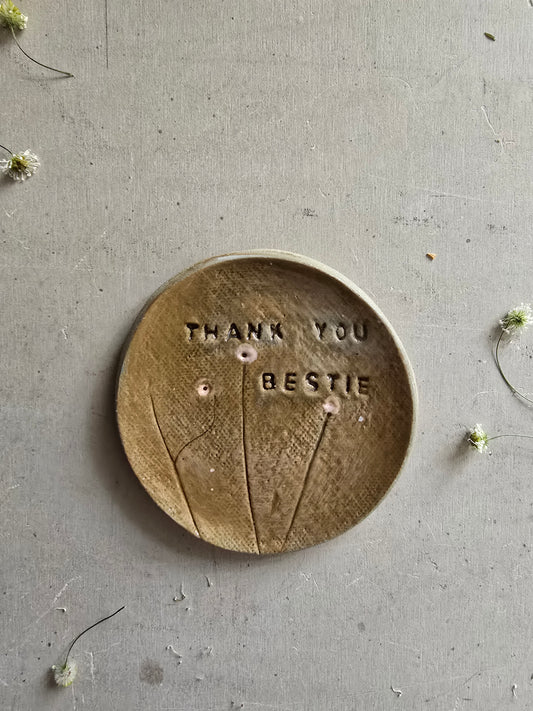 "Thank you Bestie" handmade round ceramic dish friend gift for her