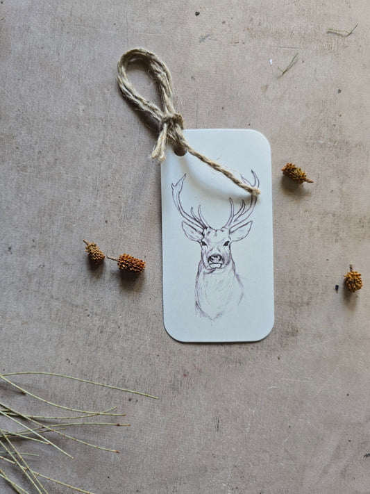 Handmade-Style Deer Sketch Christmas Tags — Off-White Festive Gift Tags, Pre-Punched & Ready to Tie