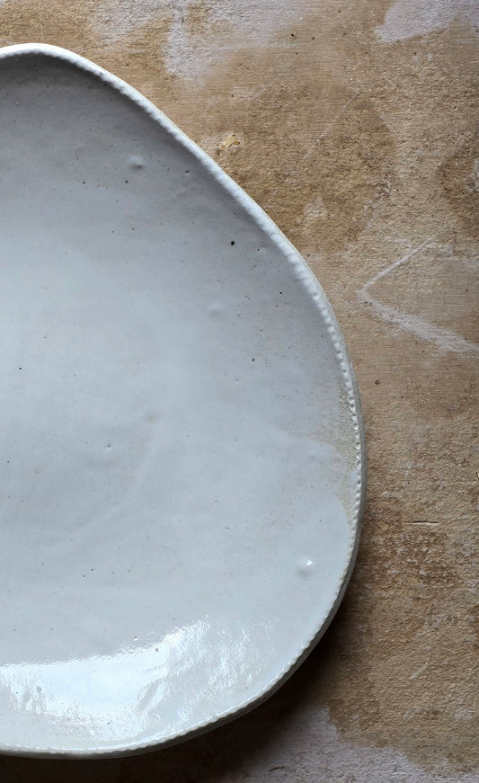 Handcrafted White Ceramic Serving Platter β Organic Egg Shape with Grey Flecks & Earthy Tones β Rustic Decorative Dish for Cheese, Fruit, Pasta & More