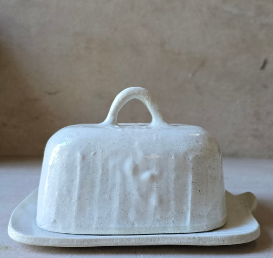 Handcrafted Stoneware Butter Dish β Creamy White Glaze with Natural Clay Flecks | Rustic Ceramic Butter Keeper