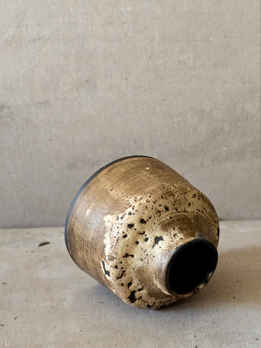 Handmade Caramel Brown Bud Vase β Black Clay Mini Vase with Latte Glaze Accents | Discounted Due to Cosmetic Base Flaws
