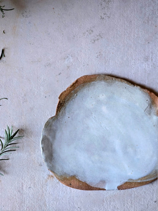 Handmade Sun and Moon Plate β Rustic Burnt Umber Clay with Organic Form & White Glaze | 18cm Snack or Decor Plate