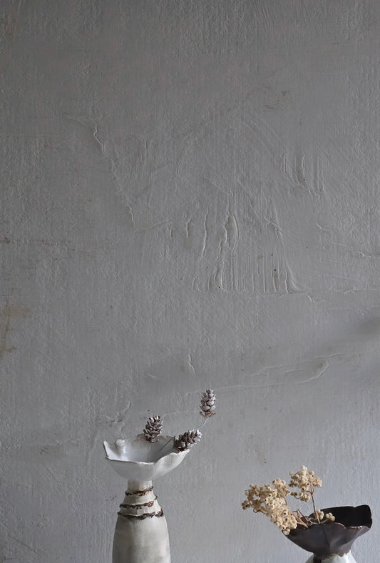 Two Handcrafted Sculptural Flower Vases – “The Ruffled Flower” & “Winter Song”