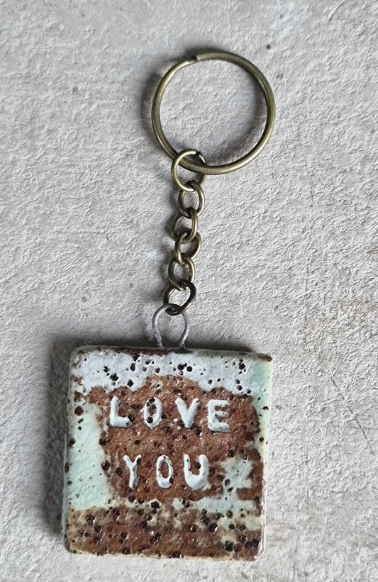 handcrafted rustic ceramic stoneware square key rings embossed LOVE YOU|great couples gift|family gift|