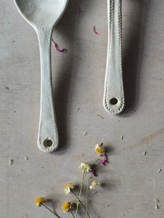 Handmade Ceramic Grateful Spoon – Oatmeal Glaze with Hanging Hole | Rustic Kitchen Gift