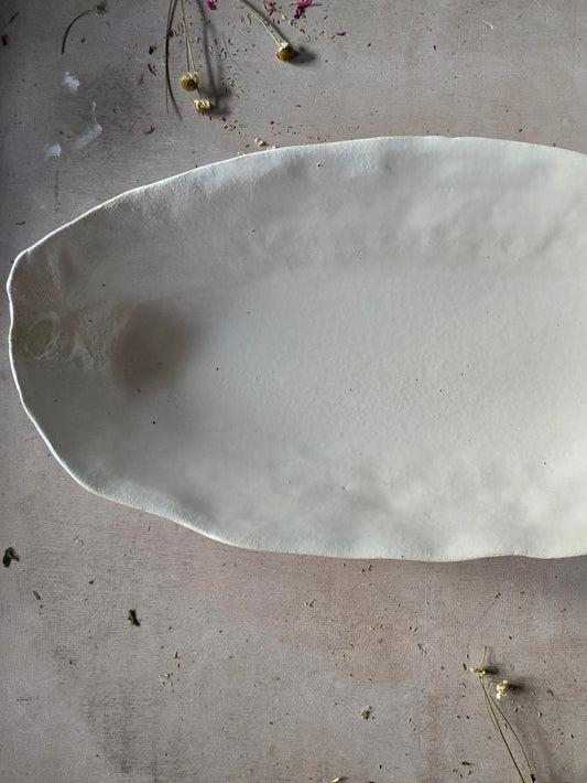 Handcrafted Organic Rectangular Serving Dish – White Glaze with Finger Impressions