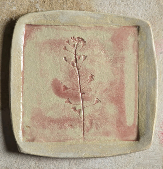 Pressed Botanical Trinket Dish — Pink Brushstroke on Biscuit Clay