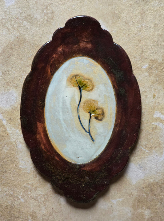 Oval Scalloped Dish | Red Claret Glaze with Handpainted Olive Green Botanicals