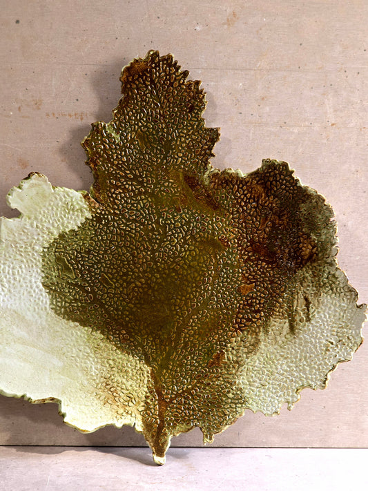 Handcrafted Big Leaf Maple Serving Platter – Sculptural Green Glaze with Vine Impressions
