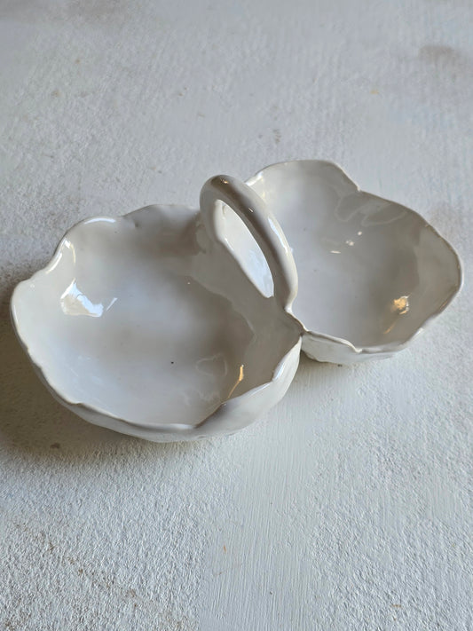Snow Mountain Twin Serving Bowls with Handle – Handcrafted Ceramic Dish for Condiments, Nibbles & Sweets