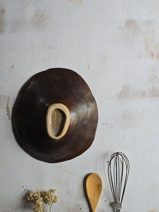 Rustic Organic Oval Bowl | Handbuilt Chocolate Brown, Caramel & Stony Beige Serving Bowl