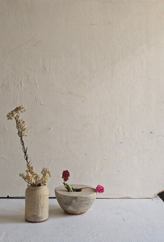 Two Handbuilt Artisan Vases – “The Rolled Collar” & “The Drummer Boy”