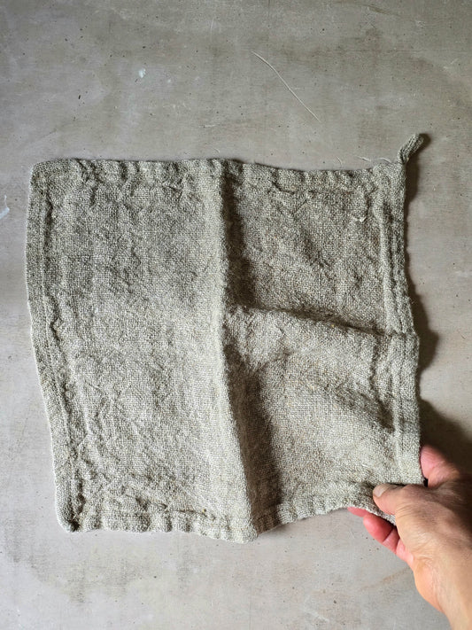 rustic natural handloomed 100% Linen wash cloth and a loop to hang.