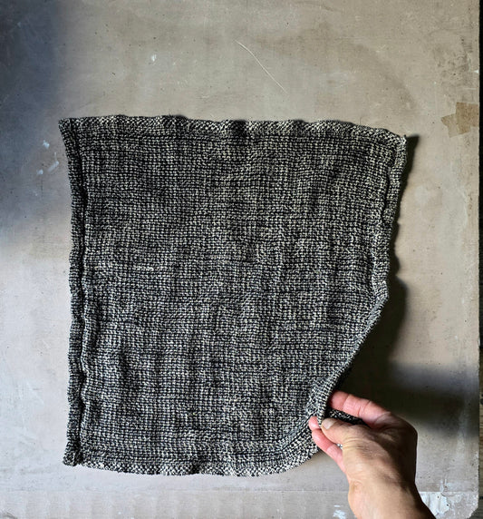 rustic handloomed 100% Linen Wash Cloth with black stripes and a loop to hang.
