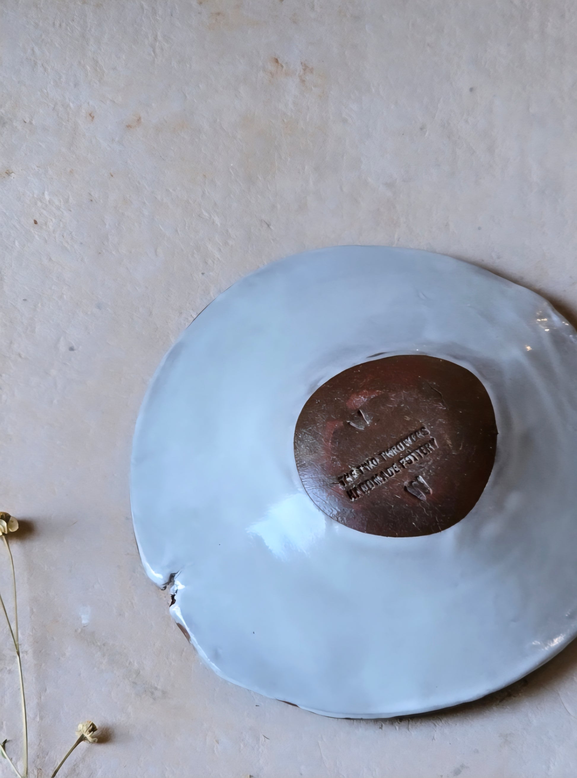 Elevate your everyday rituals with this handmade organic round dish, crafted from rich mahogany clay and finished with a silky sheer white glaze that reveals the warm undertones of the natural clay beneath. The glaze delicately highlights the texture and depth, giving each piece a uniquely earthy yet refined finish.