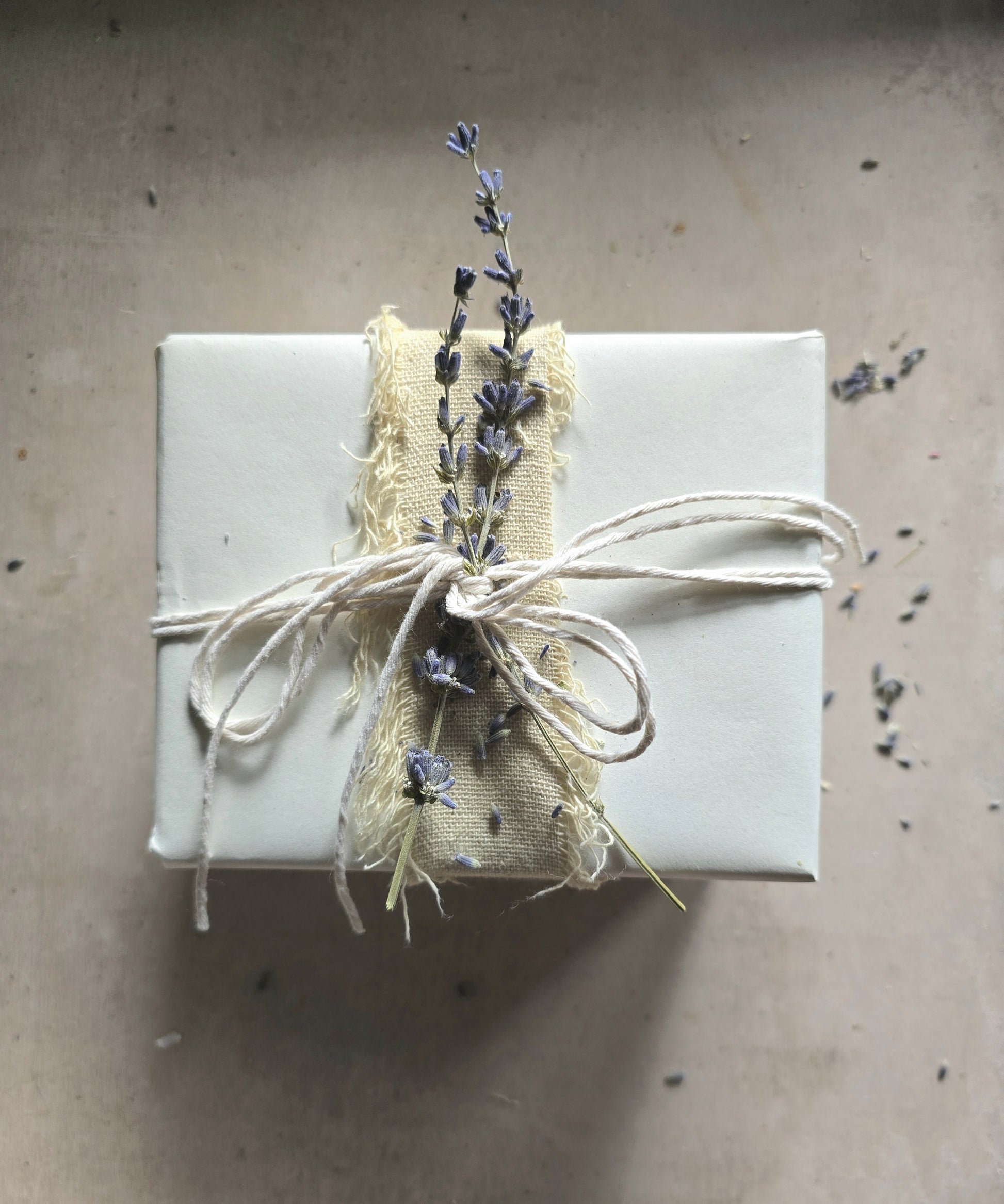 Wrapped in beautifully printed paper and finished with delicate sprigs of dried lavender, each bar feels like a little gift in itself.