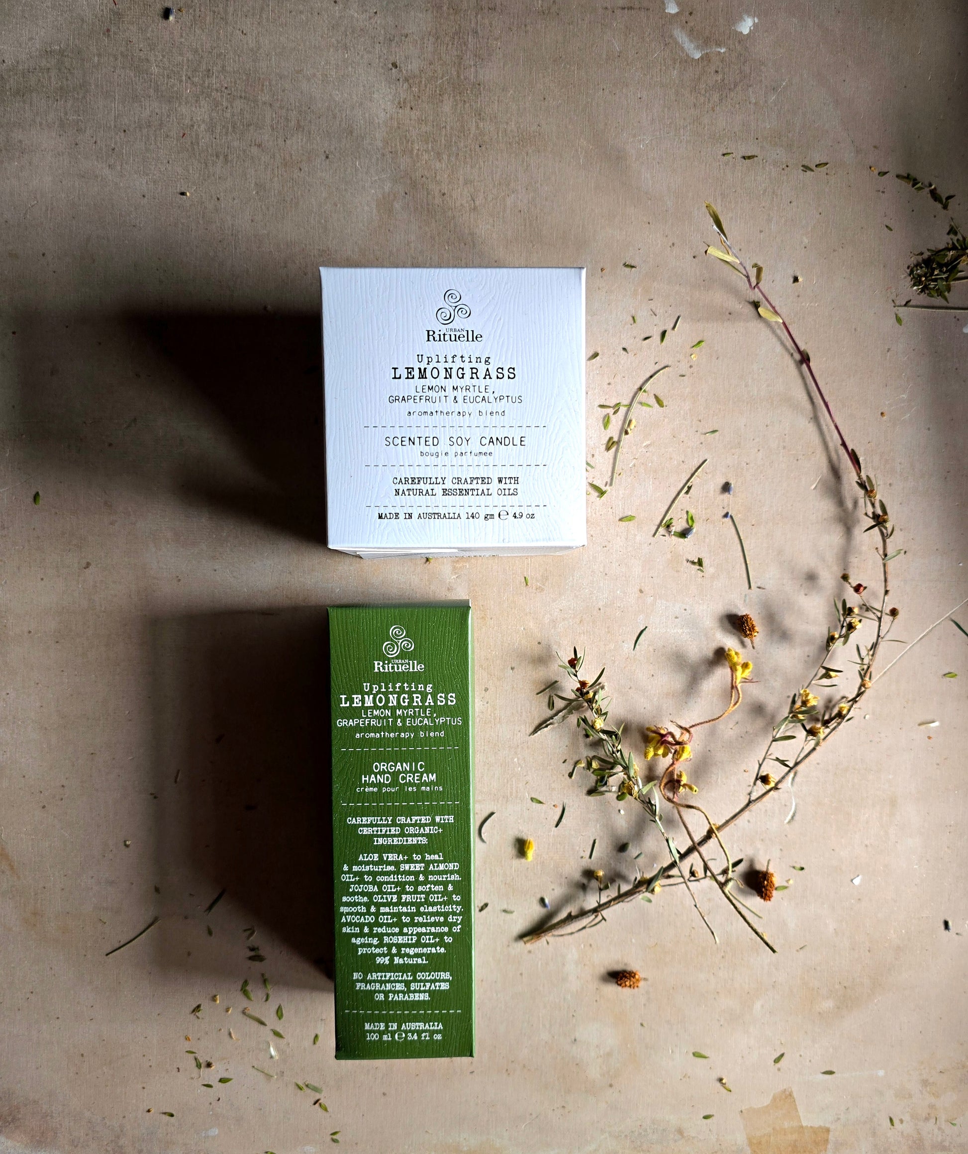 - Urban Rituelle hand moisturiser with Lemon Myrtle, Grapefruit & Eucalyptus essential oils.