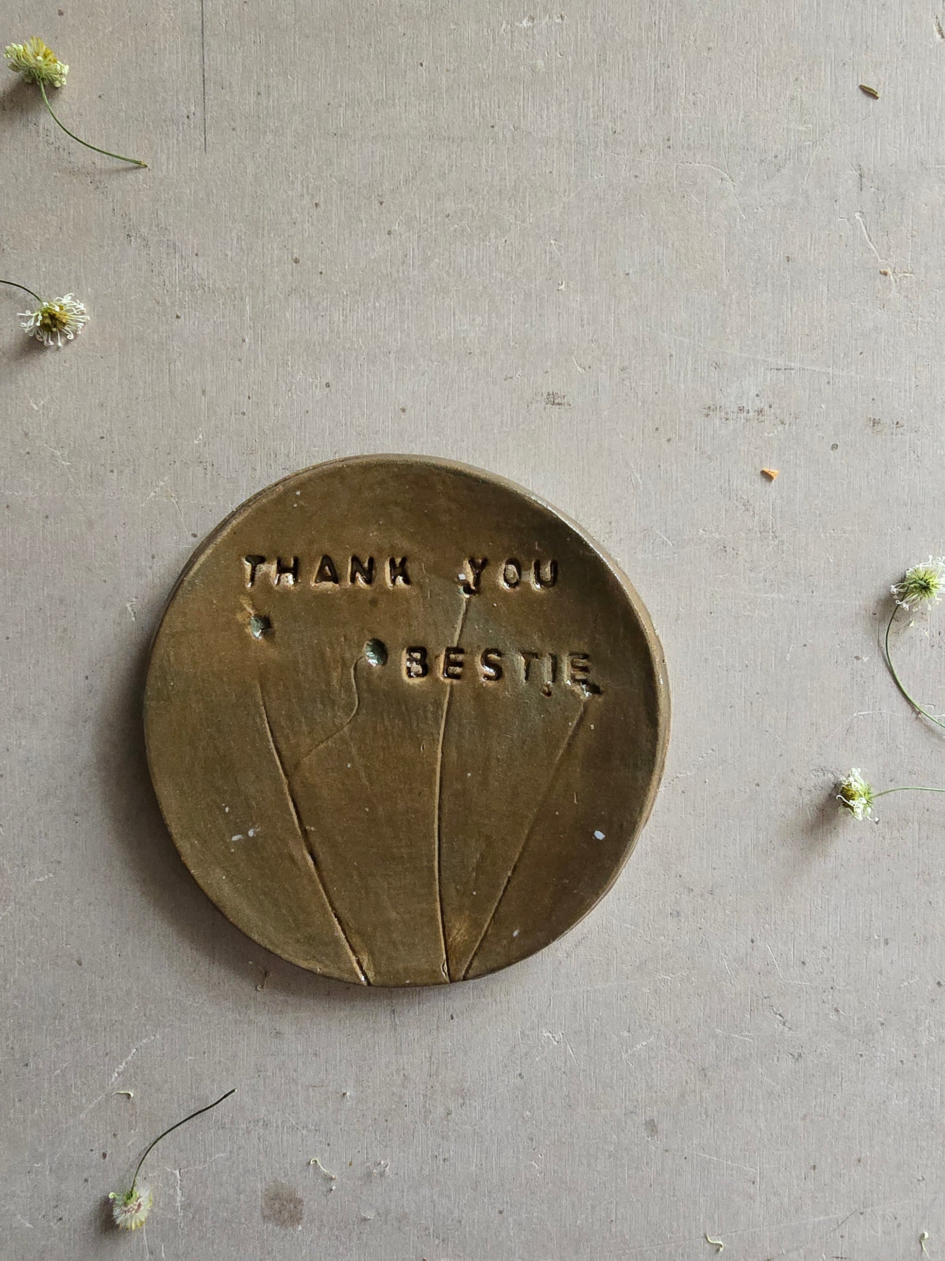 "Thank you Bestie" handmade round ceramic dish friend gift for her