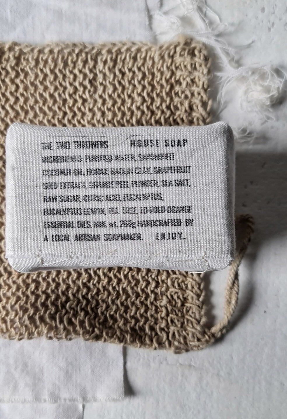 Our HOUSE SOAP is handcrafted by a local soap maker. This bar is filled with natural ingredients leaving surfaces squeaky clean. You can find our natural House Soap & the Dish Scrubber in the Home & Living category.
