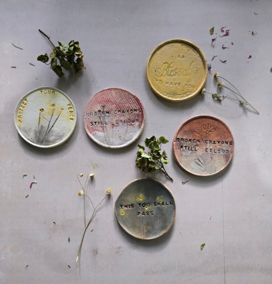 Whether placed on a bedside table, desk, kitchen counter, or coffee table, these handmade ceramic dishes serve as daily reminders of positivity, gratitude, and self-care.
